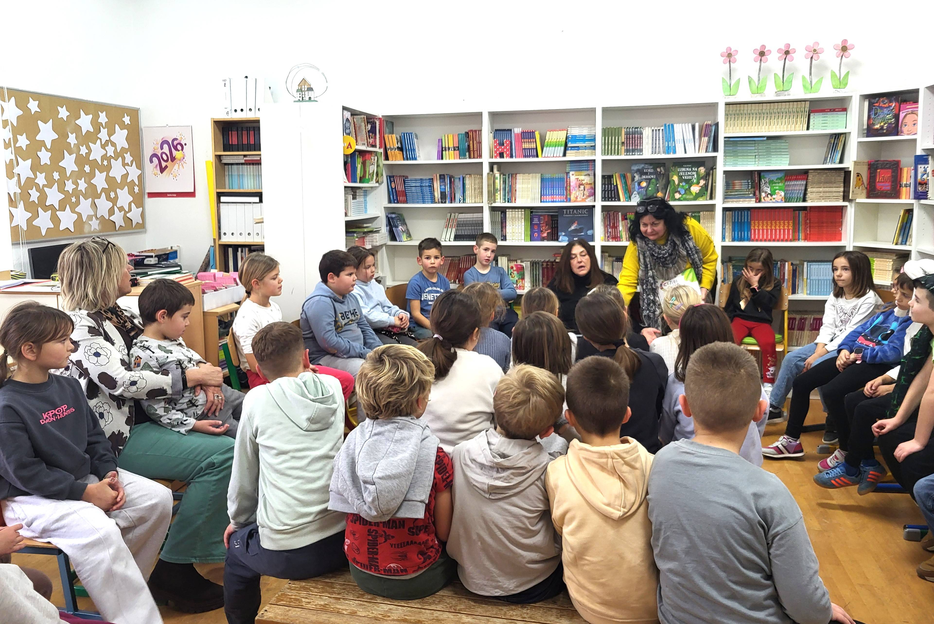 Učenicima 1.a i 1.b, svaki dan, kad završi odmor, pročitamo novu priču u školskoj knjižnici, a puno se čita i u drugim učionicama. Tako se i naša škola uključila u Nacionalni čitalački izazov „15 po 15: cijela Hrvatska čita djeci“. Izazov poziva sve odrasle koji se brinu o djeci da 15 dana zaredom čitaju djeci bar 15 minuta, a temelji se na jednostavnoj, ali snažnoj poruci: redovito čitanje ključno je za djetetov razvoj, a već 15 dana dosljednog čitanja dovoljno je da se uoče prve pozitivne promjene - to je 15 dana čitanja koji mogu promijeniti djetetovu budućnost.