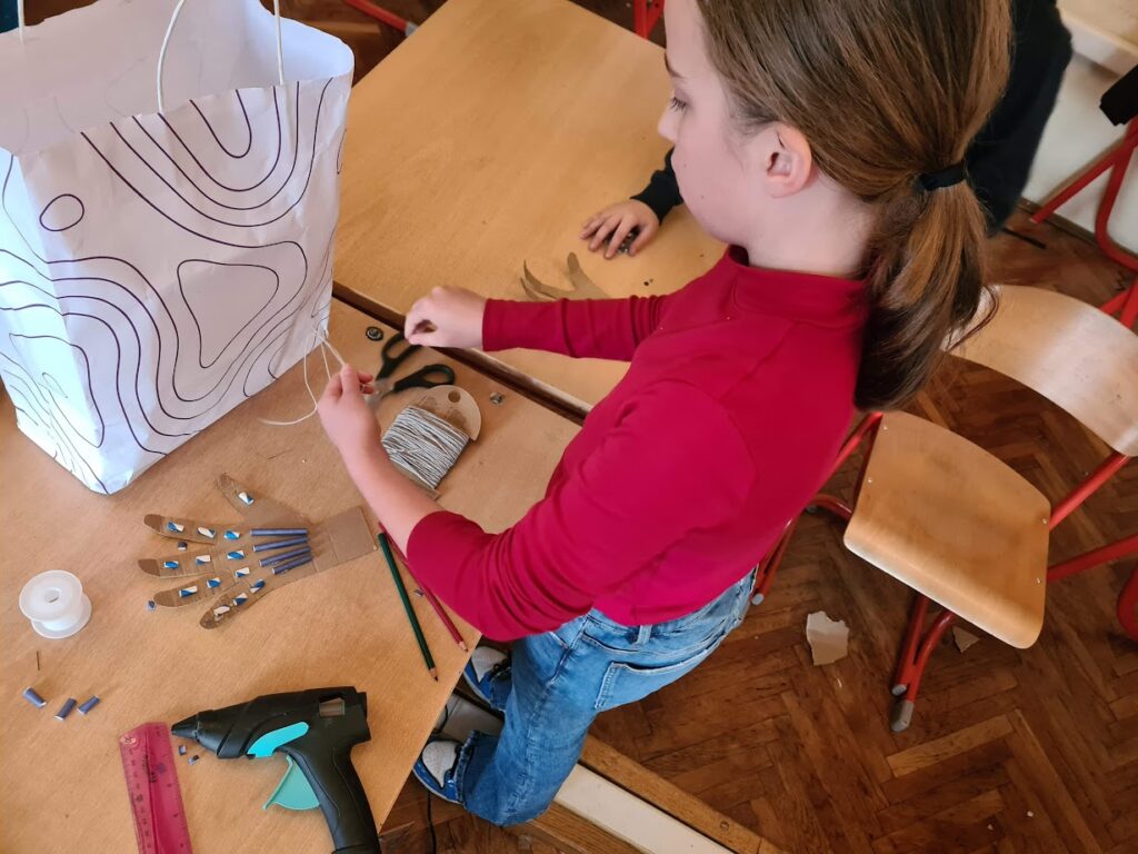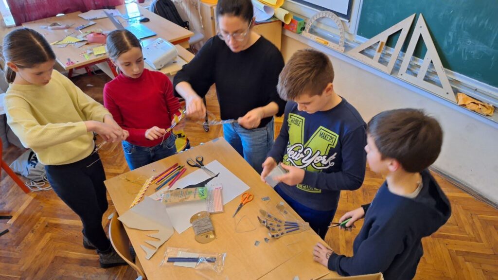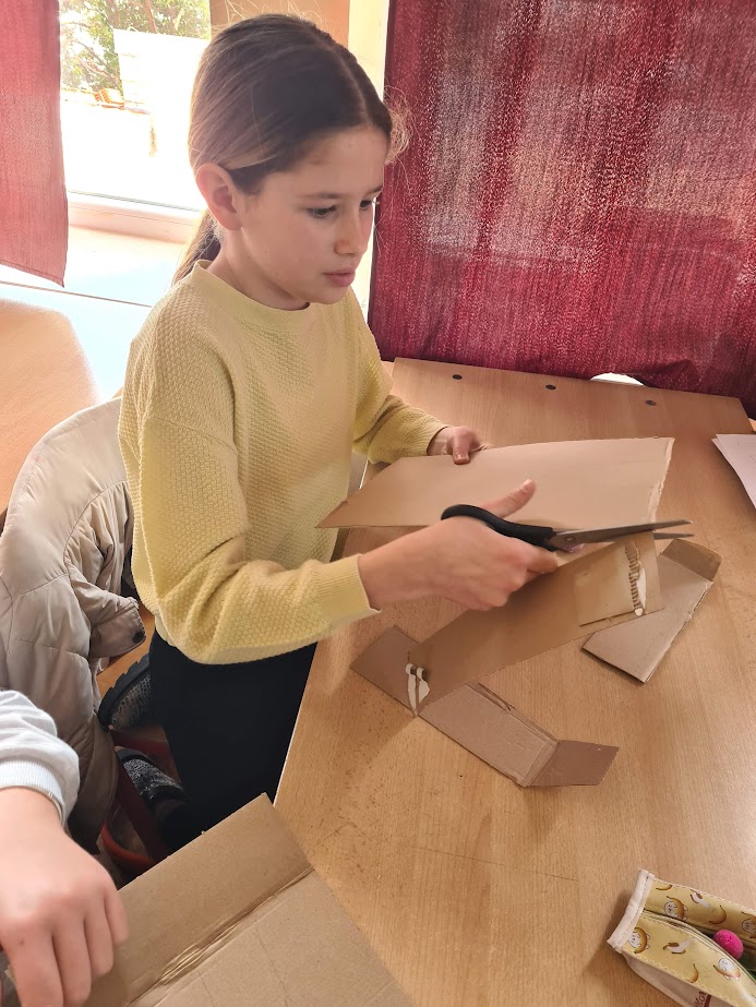 Nakon što su stekli osnovno razumijevanje, učenici su prešli na dizajniranje svojih modela. Koristeći osnovne materijale poput kartona, ljepila i drva, učenici su oblikovali svoje modele. Svaka faza izrade bila je prilika za učenje i poboljšanje. Od rezanja i oblikovanja kartona do spajanja dijelova i testiranja funkcionalnosti, učenici su aktivno primjenjivali svoje STEM vještine i rješavali probleme koji su se pojavljivali.